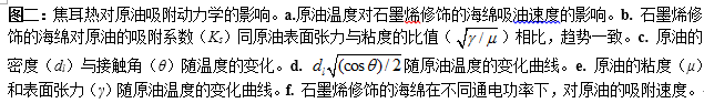 这项研究开创了浮油吸附材料设计的新路径,解决了以往多孔疏水亲油材料对高粘度浮油吸附速度慢的难题,提出的界面加热降低原油粘度的原创技术在石油化工业中的油水分离领域也有着广泛的应用前景。该研究提出的可加热经石墨烯功能化后的海绵组装体材料,经优化材料和结构可进一步降低材料成本和电能消耗,有望在今后应对海上原油泄漏事故处置中获得广泛的应用。